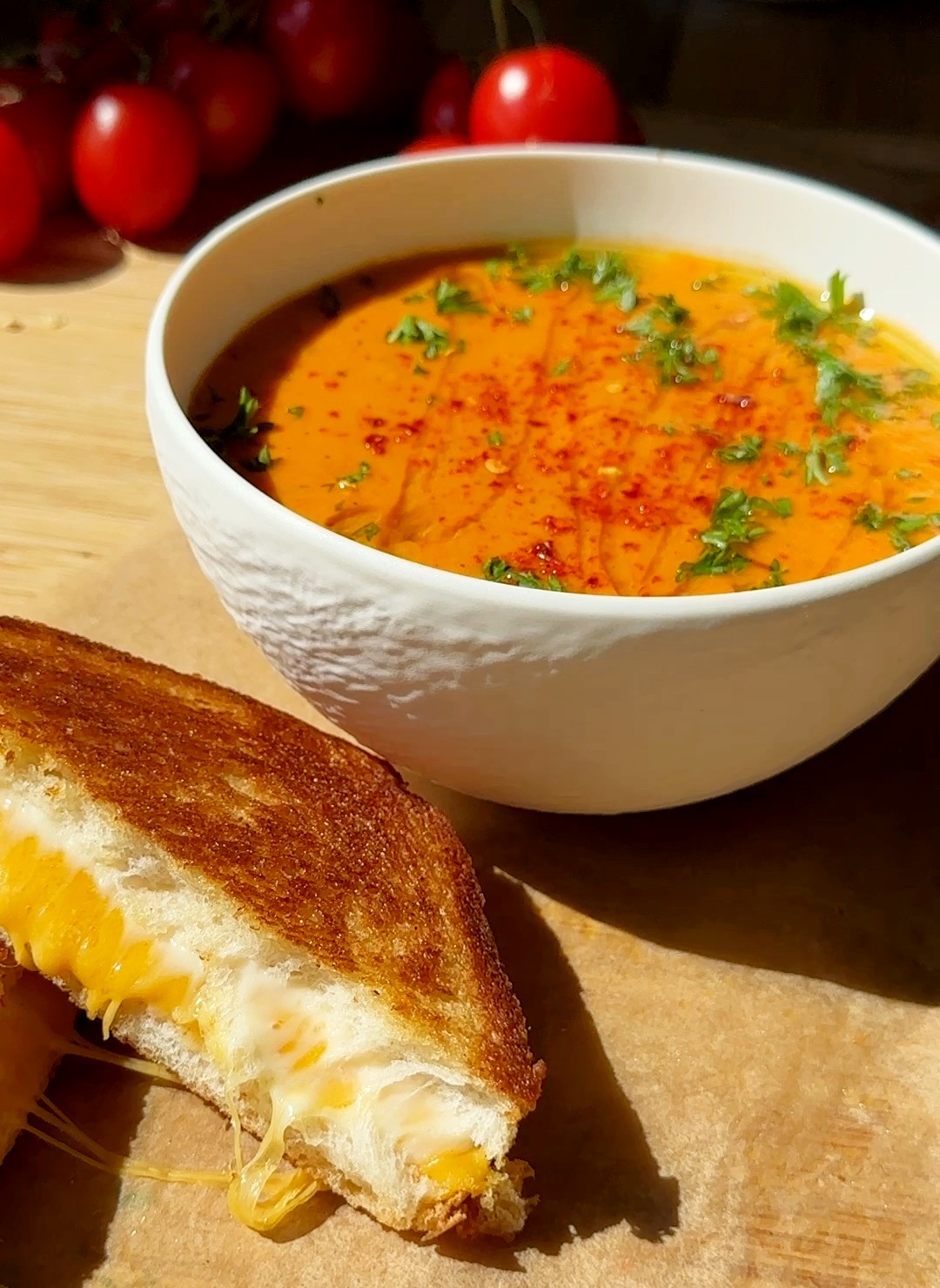 Serve and Enjoy:Cut the grilled cheese sandwiches into halves or quarters for easy dipping. Serve alongside the warm, creamy tomato soup, and enjoy the ultimate comfort meal.