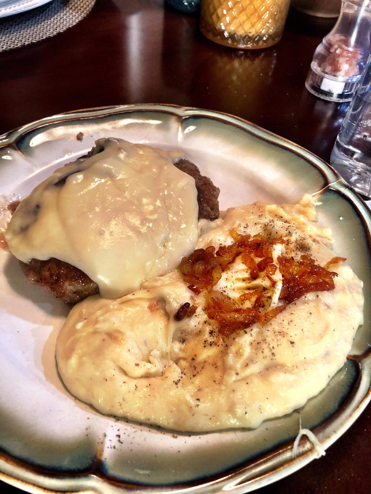 Drain the potatoes well and place them back in the pot. Use a potato masher and mash to the consistency you enjoy. Mash in half of the butter/cream mixture and 1 tsp salt. Continue mixing and folding in the cream mixture for a minute or two. Stir in the rest of the mixture and then add the Gruyere cheese slowly, allowing the cheese to melt. Stir in half the caramelized onions. Taste frequently and add salt as needed to meet your taste preference. Add remaining onions as desired saving a few to place as a topping.